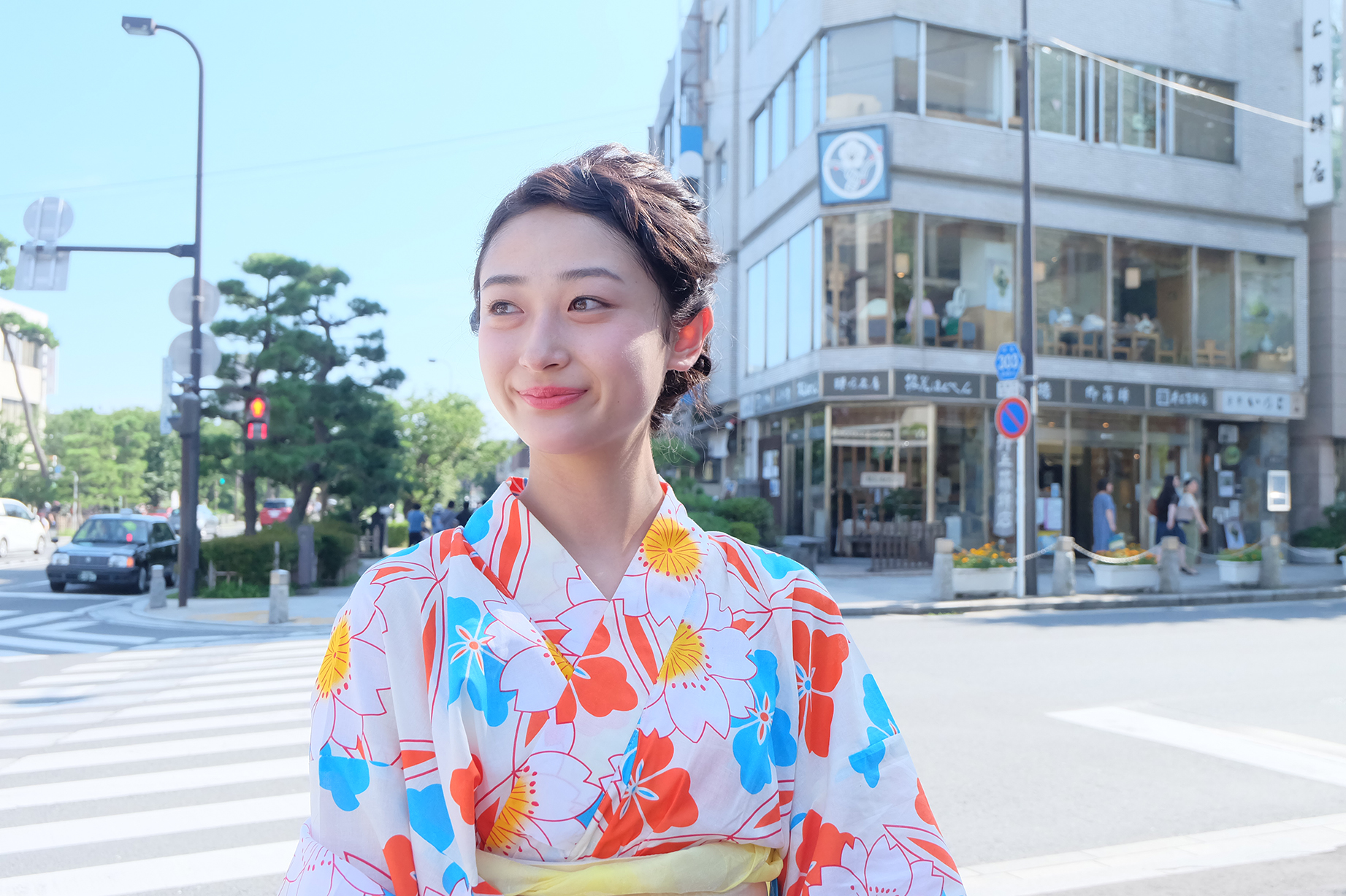 静かな町並みを浴衣で歩く万里奈さんは、その佇まいだけで画になるなぁ。