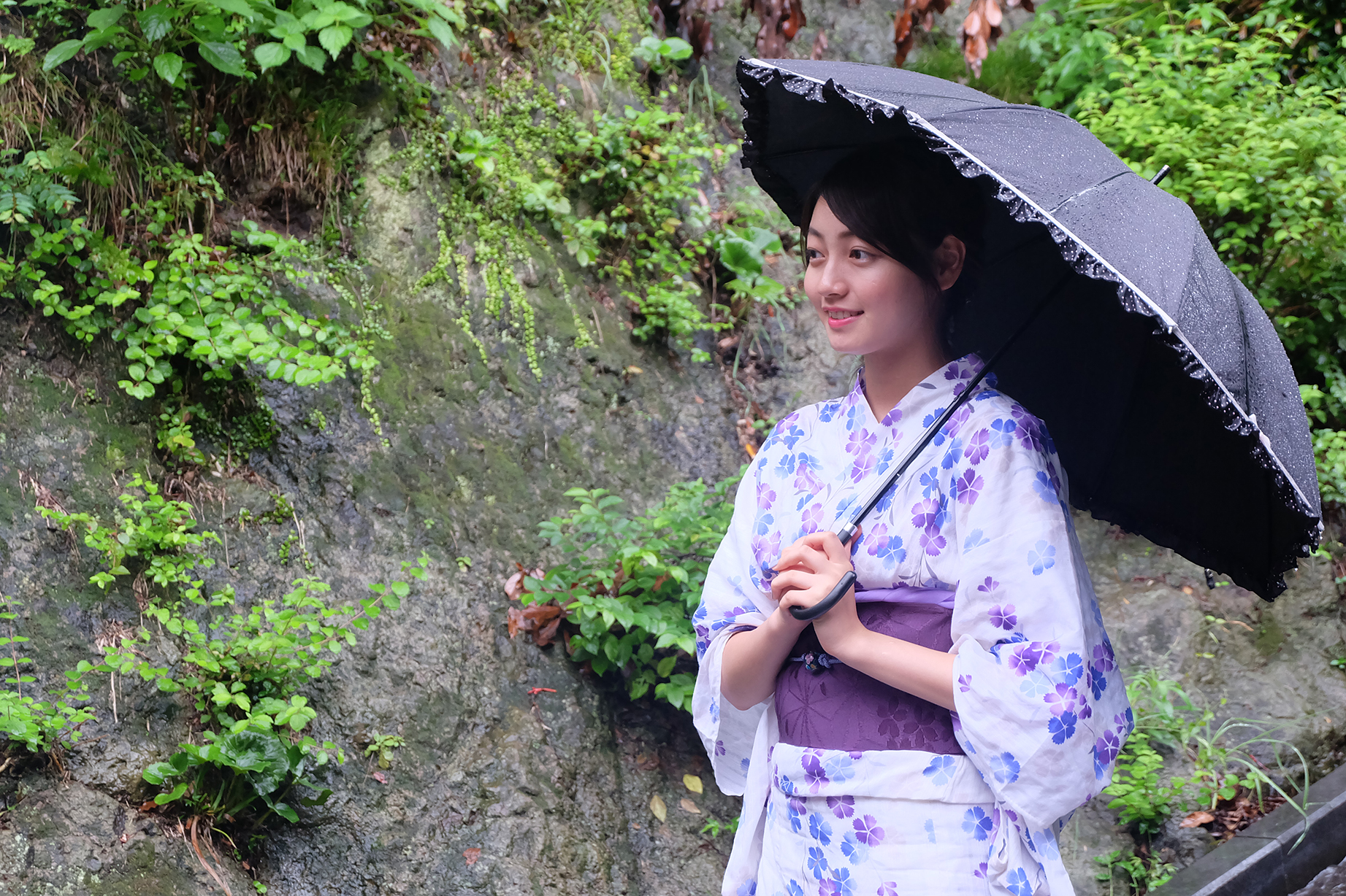 雨の中浴衣で歩く、って風流だなぁ。