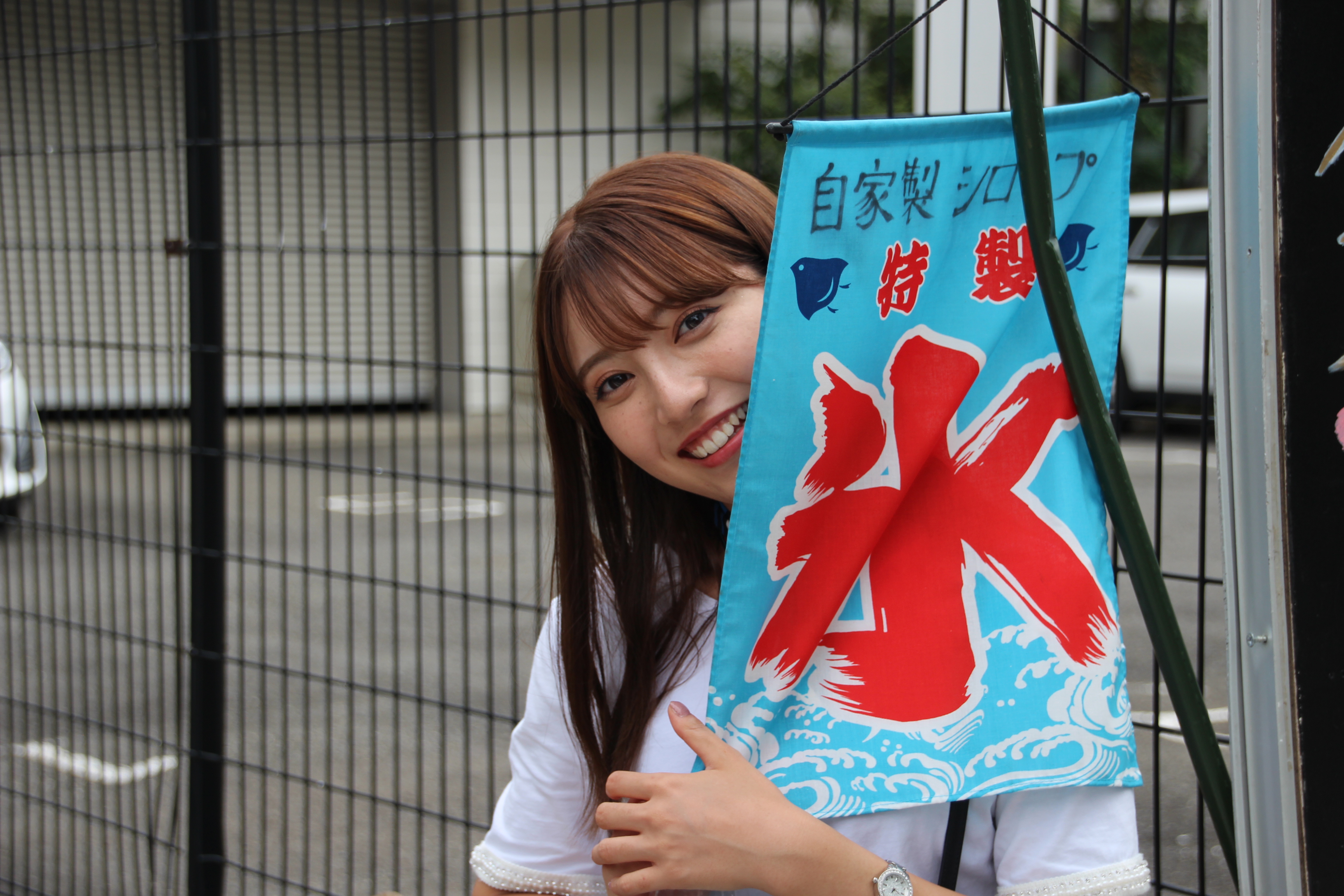 運動した後は場所を移動して、古民家カフェで昼食を食べました。パスタを食べて出てきた後、かき氷の旗をみつけて嬉しそうな表情の佐藤さん。可愛らしい一面を見せてくれました。
