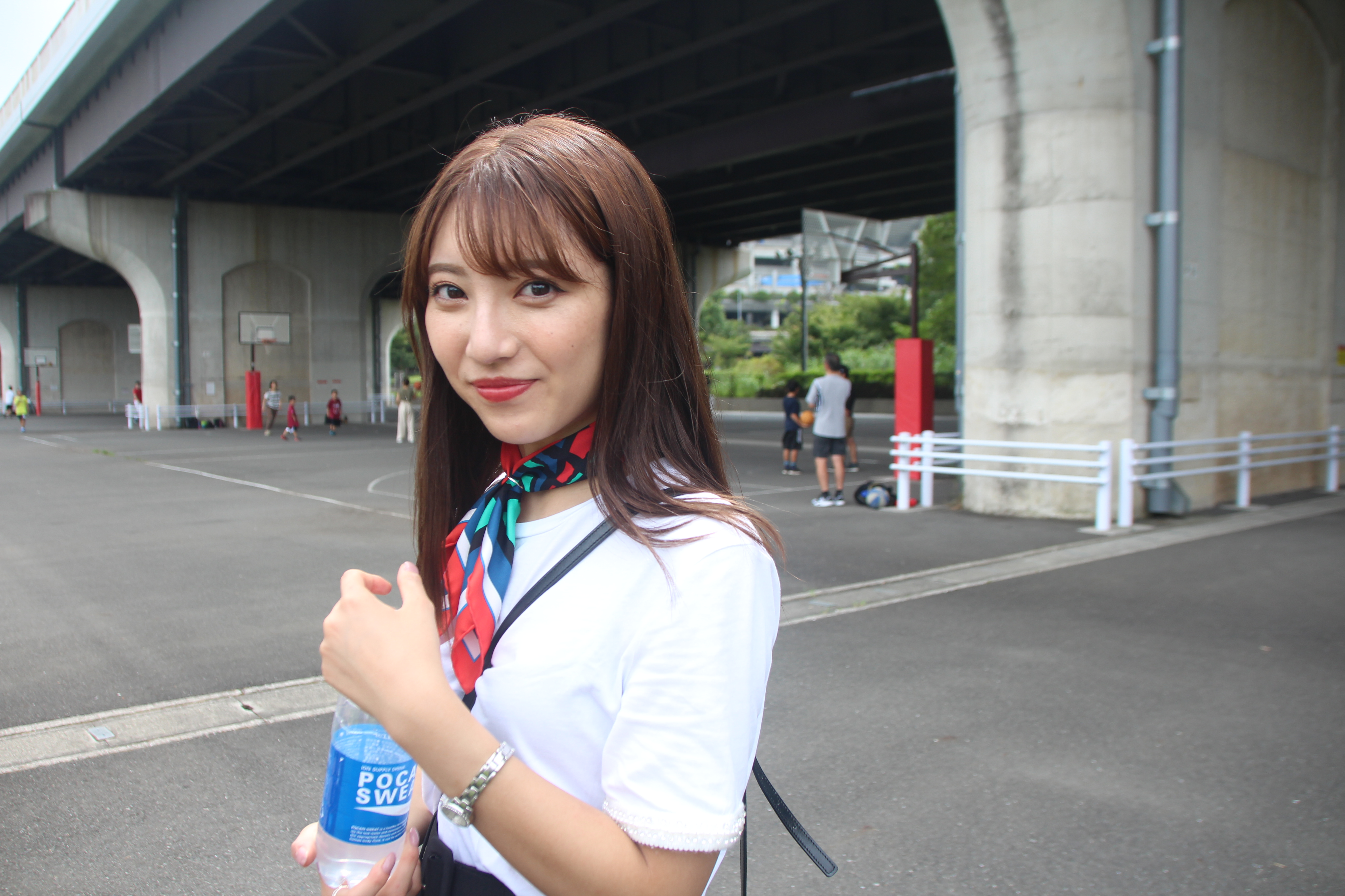 バスケ経験者ということで、最初はバスケットコートに向かいました。さすが経験者というだけあって、何本もシュートを決める佐藤さん。そのかっこいい姿に撮影陣も惚れ惚れしました!