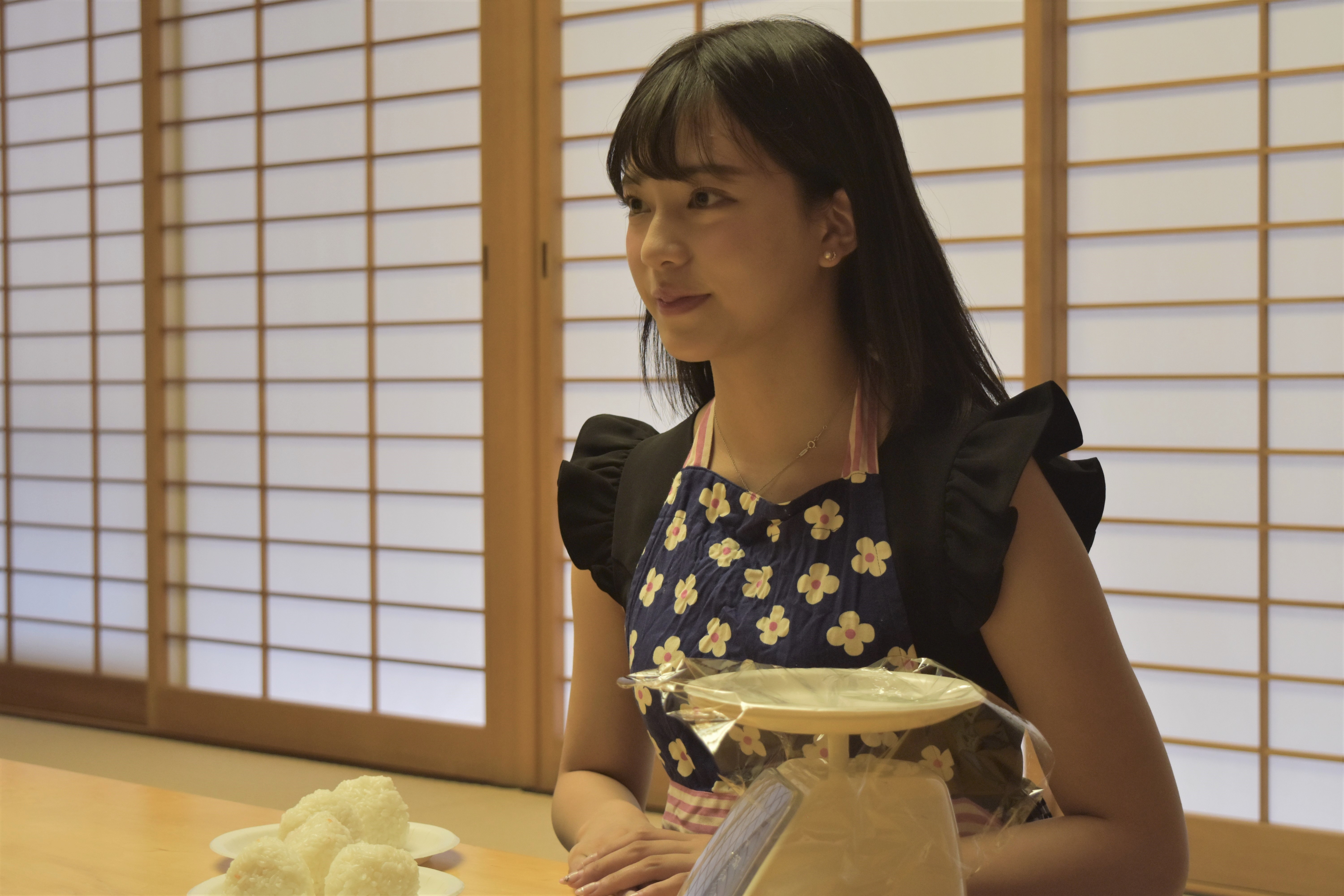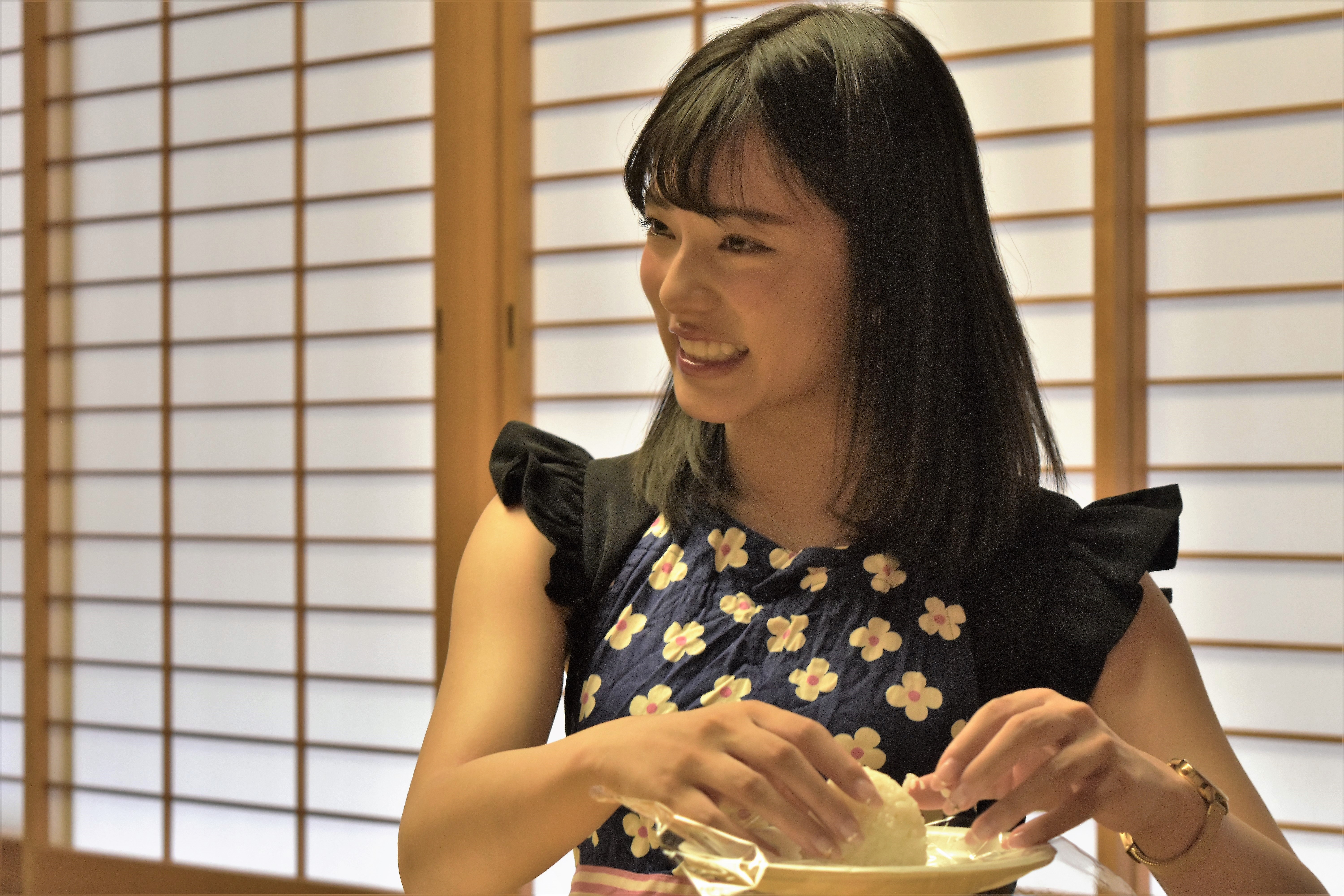 いざチャレンジが始まると手慣れた手つきでおにぎりを握る藤田さん。
