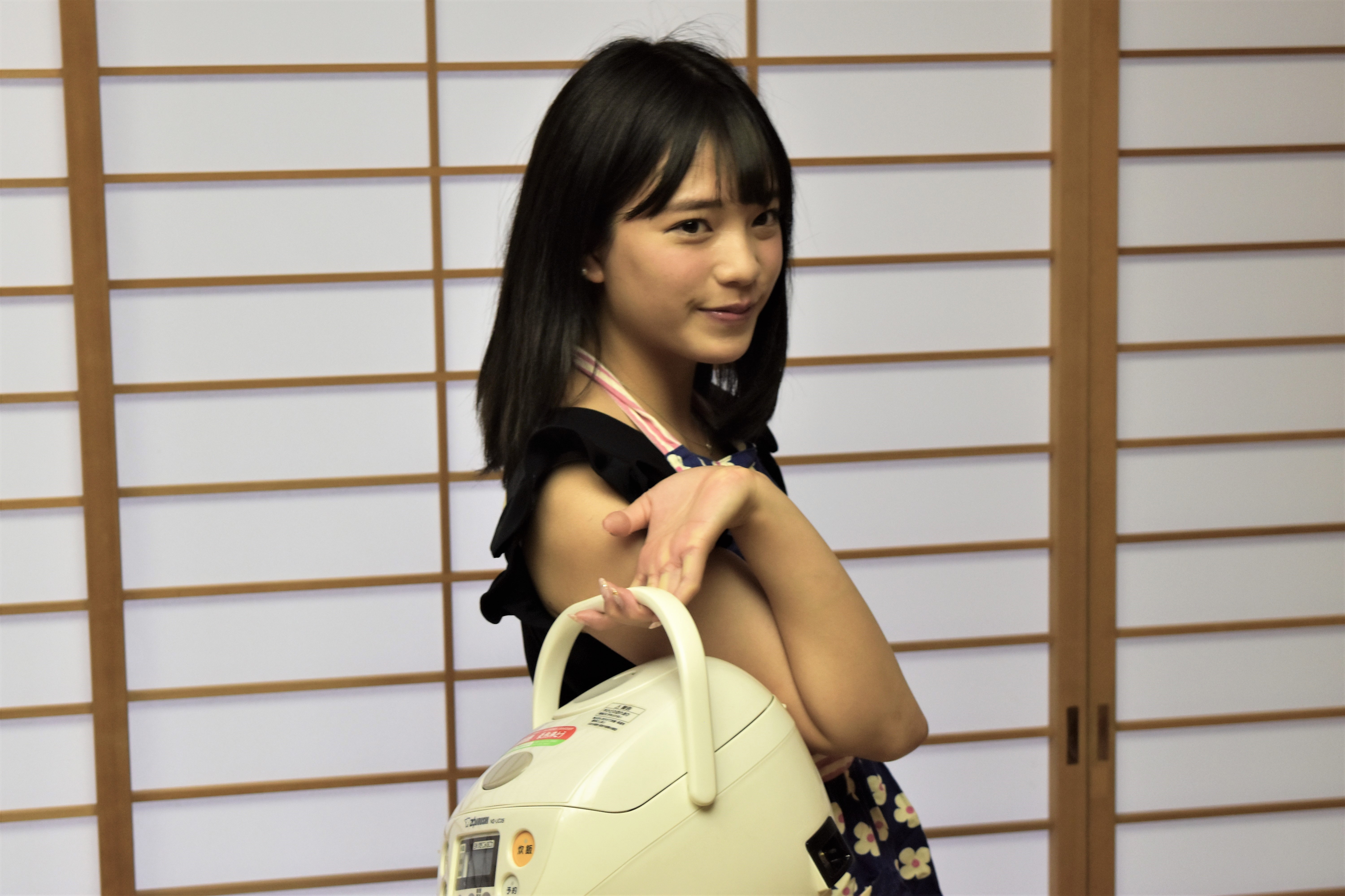 わざわざ持ってきてくださった自前のエプロン姿は元々ある魅力が爆発していました。