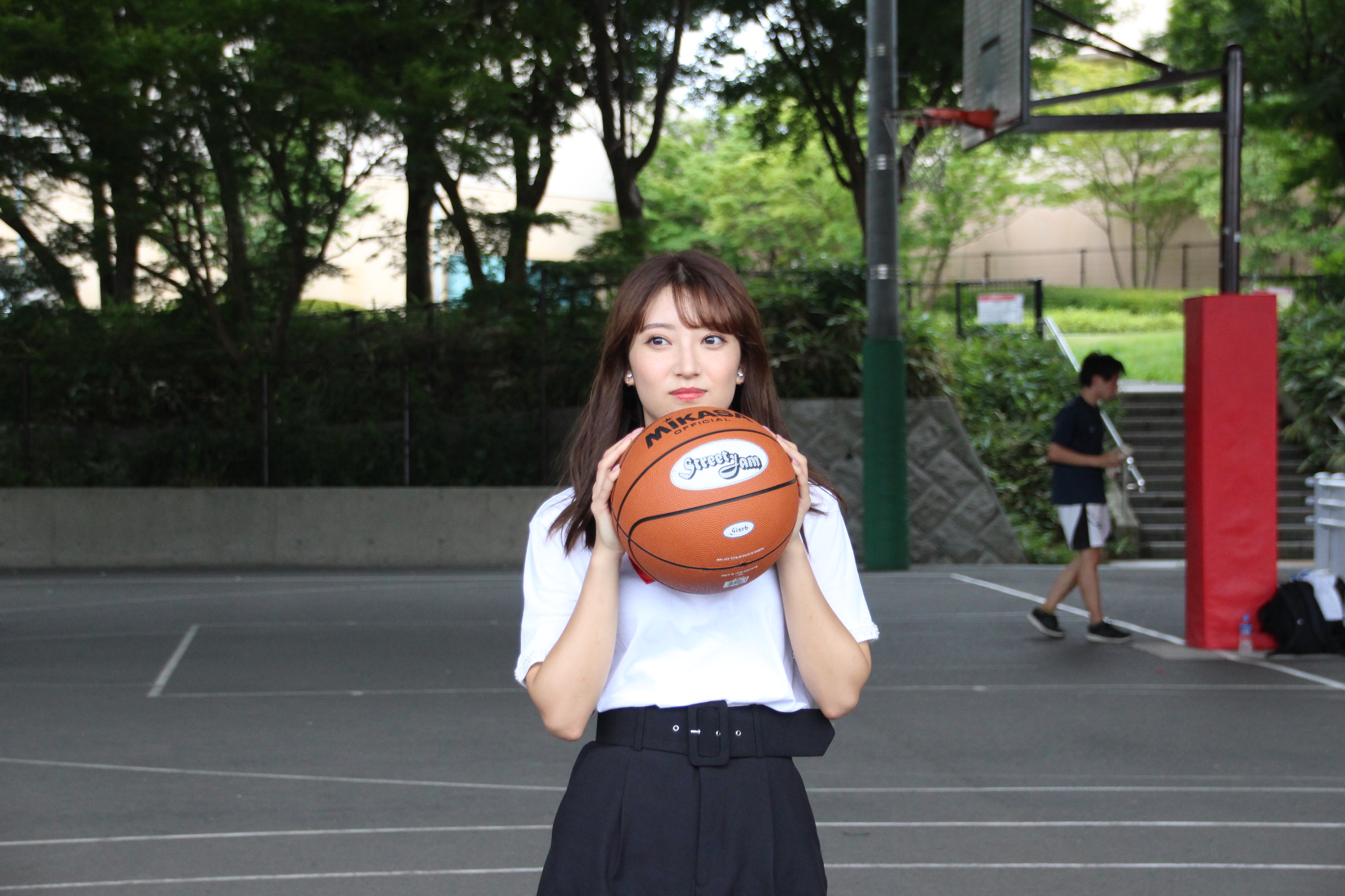 バスケ経験者ということで、最初はバスケットコートに向かいました。さすが経験者というだけあって、何本もシュートを決める佐藤さん。そのかっこいい姿に撮影陣も惚れ惚れしました!