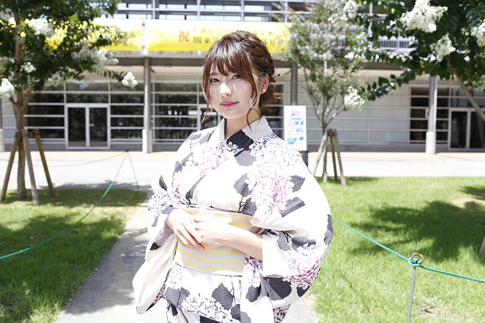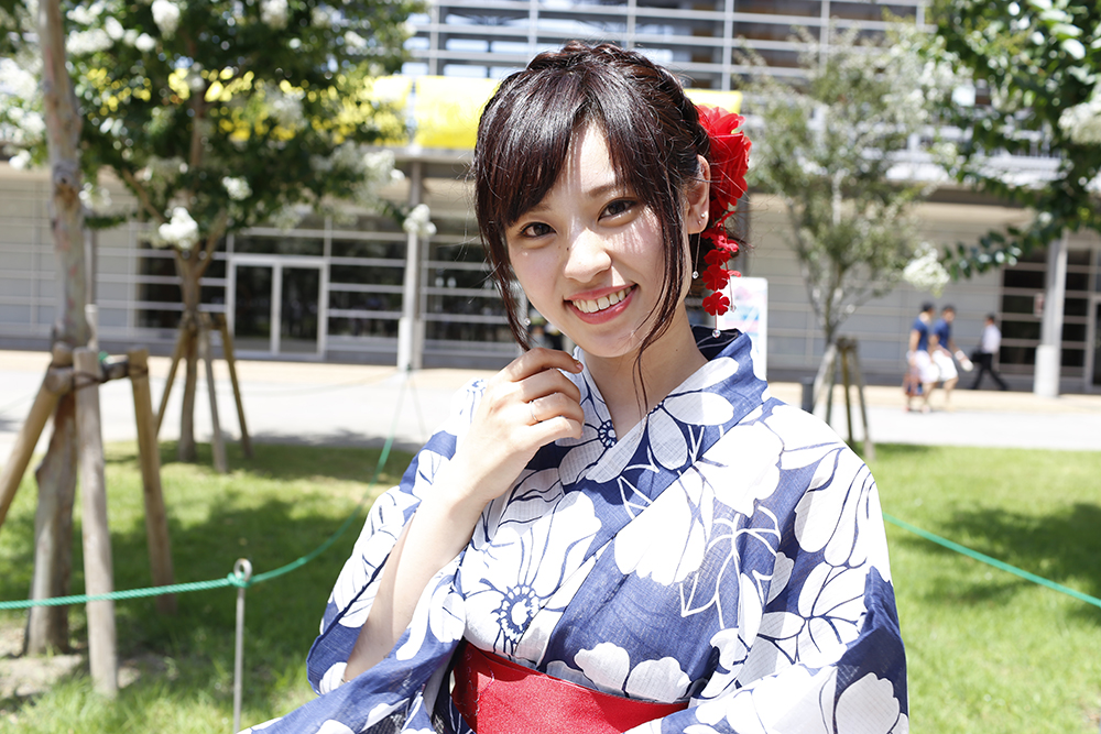 「ミスコンにでるなんて思ってもいなかったので、いろんな機会にとても緊張しています。しかし出るからには、皆さんに応援したいと思っていただけるように、たくさんのことに挑戦して成長していきたいです!約半年間、笑顔で自分らしく楽しんで頑張っていきたいと思っていますので、よろしくお願いします♪」