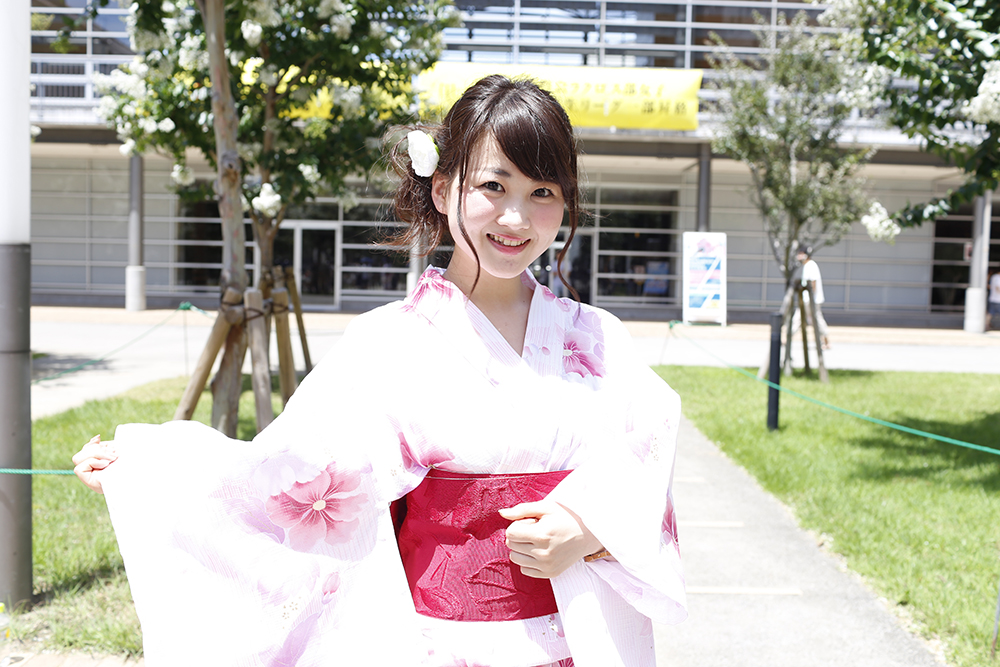 非常に暑い中、ミス候補たちは涼やかな浴衣姿でヴォーリス広場に登場しました。