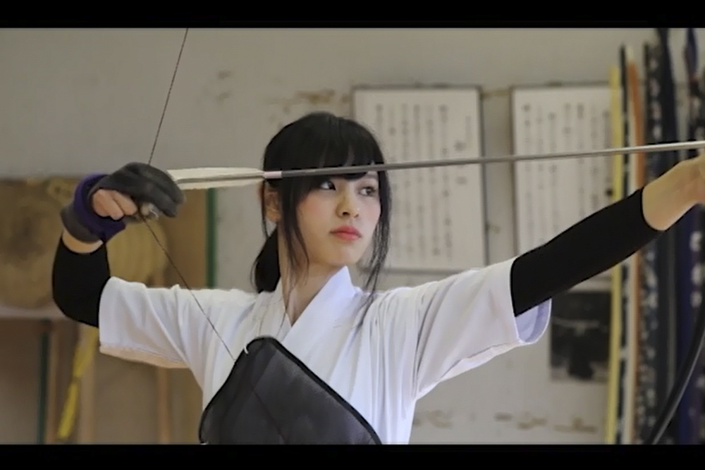 清水さんは、弓道に取り組む姿を映像で紹介しました。