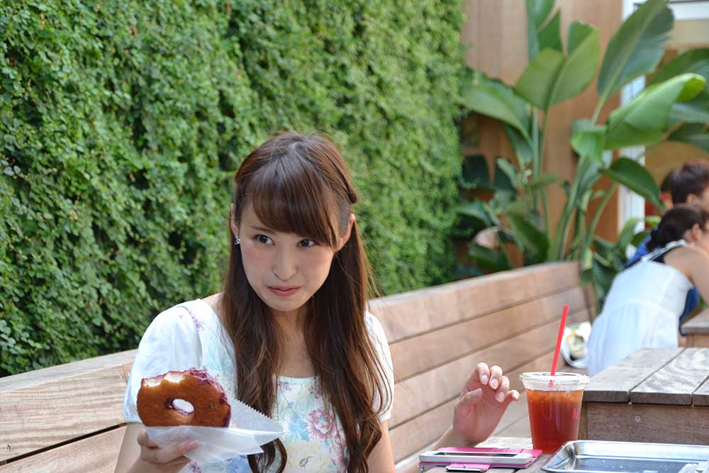 おしゃれなカフェでおいしそうにドーナッツを食べる姿はとても画になっていました。